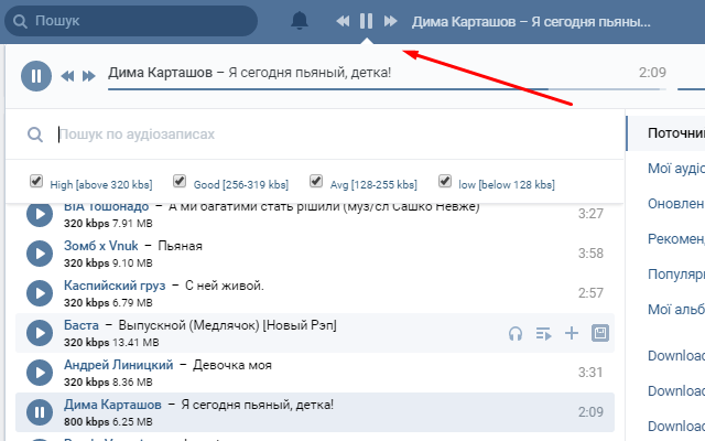 - Обязательно прослушивайте ту песню, которую собираетесь добавить в плейлист ВКонтакте. Часто трек называется, например, «Богемная рапсодия», а при прослушивании оказывается, что это Верка Сердючка с песней «Гоп-Гоп».